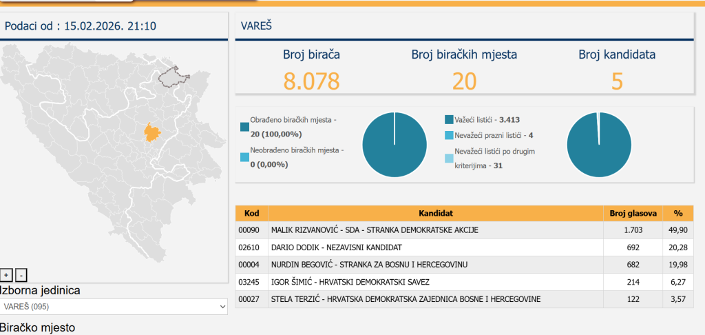 Kandidati hrvatskih stranaka za načelnika Vareša dobili manje od 10 posto glasova birača