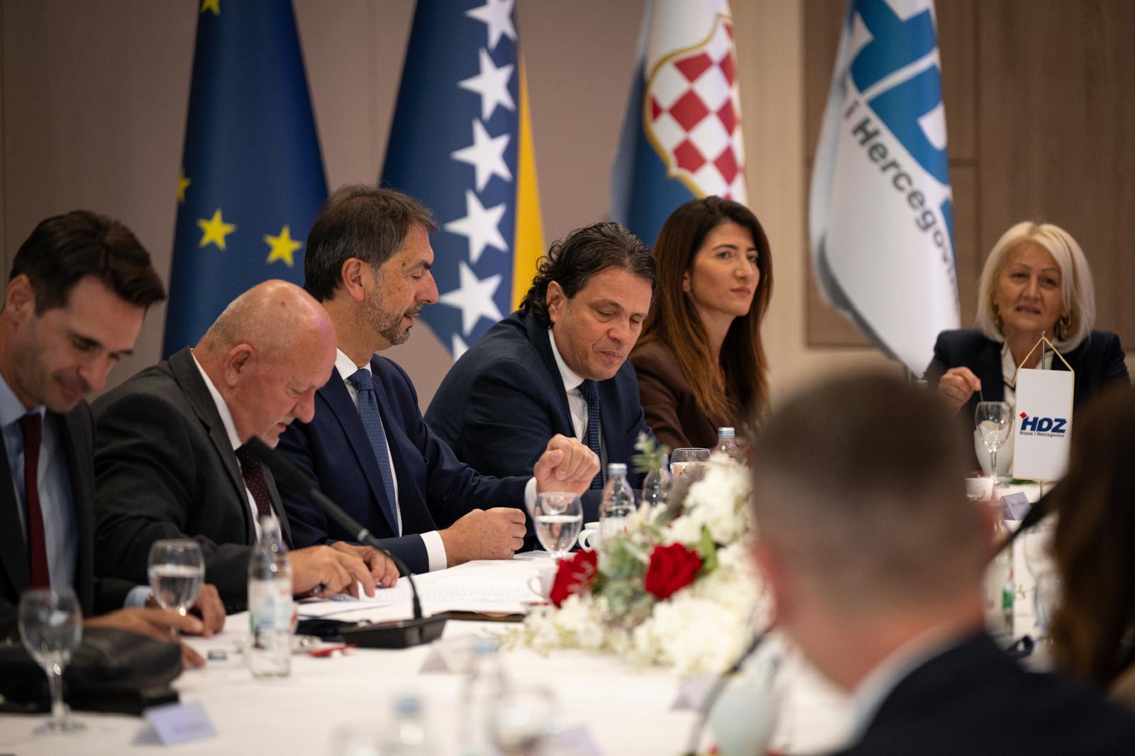 U okviru godišnje Klauzure Hrvatske demokratske zajednice Bosne i Hercegovine u Neumu, danas je održana 24. redovita sjednica Predsjedništva HDZ-a BiH. U središtu dnevnog reda razmatrana je informacija o realizaciji ciljeva u izvršnoj i zakonodavnoj vlasti na svim razinama, s posebnim naglaskom na europski put, usvajanje Reformske agende te ukupnu političku situaciju. Osobita pozornost posvećena je i predstojećoj 30. obljetnici Daytonsko-pariškog mirovnog sporazuma te trajnoj potrebi zaštite ustavnog poretka Bosne i Hercegovine i jednakopravnosti hrvatskoga kao konstitutivnog naroda.