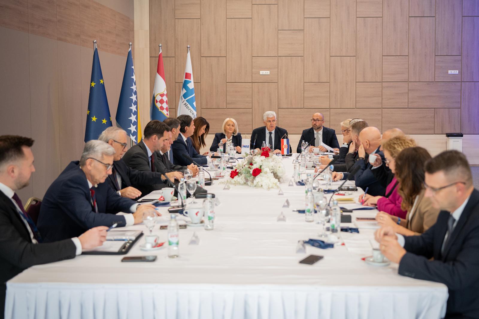 Predsjedništvo je danas posebno istaknulo važnost daljnjeg intenziviranja integracijskih procesa, naglašavajući kako dužnosnici HDZ-a BiH nastavljaju štititi stabilnost političkog dijaloga te predvoditi EU put Bosne i Hercegovine. Sukladno, pozdravljeno je usvajanje Reformske agende na čelu s predsjedateljicom Vijeća ministara BiH Krišto te je upućen poziv svim političkim dionicima za konstruktivno djelovanje u žurnom ispunjavanju preostalih reformskih prioriteta i ostvarivanje novoga zamaha na europskom putu.