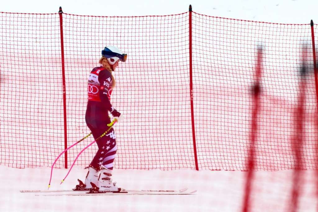 Vodeća u poretku spusta Lindsey Vonn nakon prvog skoka izgubila je ravnotežu, dospjela u položaj na leđima i na kraju udarila u zaštitnu mrežu. U prvi trenutak nije bilo jasno je li se ozlijedila – ostala je ležati u snijegu otežano dišući, no ubrzo se podigla. Nakon nekoliko minuta pružene pomoći uspjela je samostalno sići niz stazu. Ipak, tijekom spuštanja više je puta zastajala i držala se za lijevo koljeno. U cilju je Vonn mahnula publici, a zatim otišla u šator na pregled.