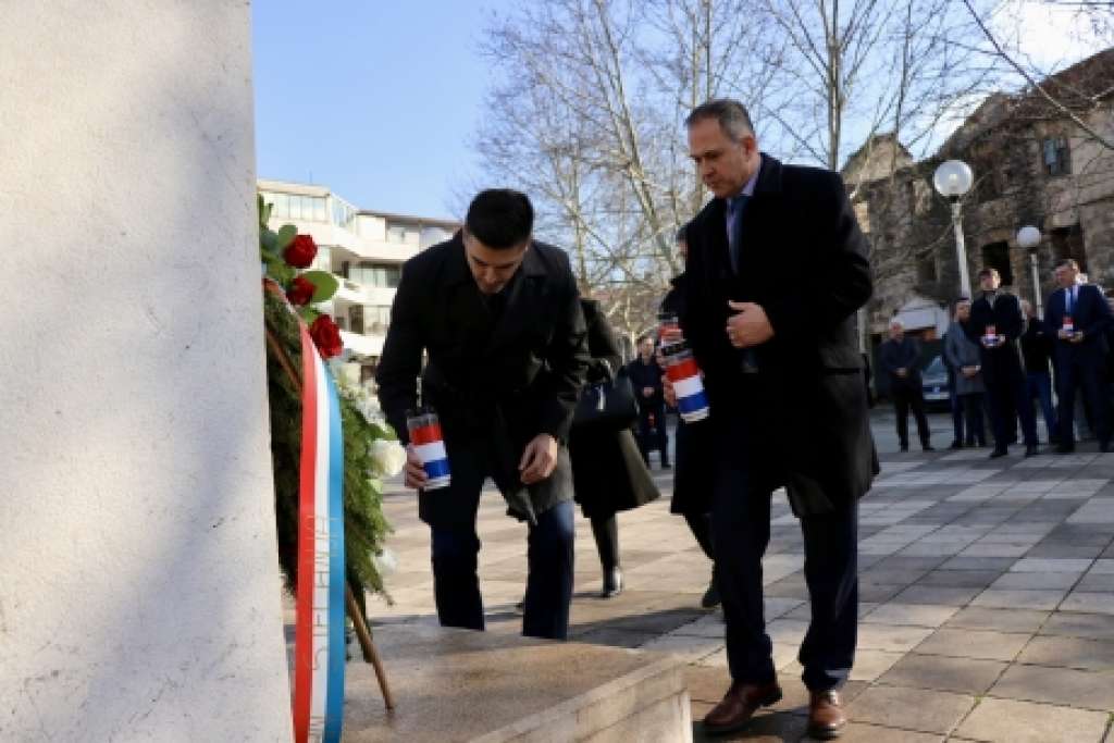 Na Trgu širokobrijeških žrtava, danas je povodom 7. veljače, Dana sjećanja na pobijene franjevce i puk, položen vijenac i zapaljene svijeće za sve stradale žrtve Širokog Brijega i Županije Zapadnohercegovačke.